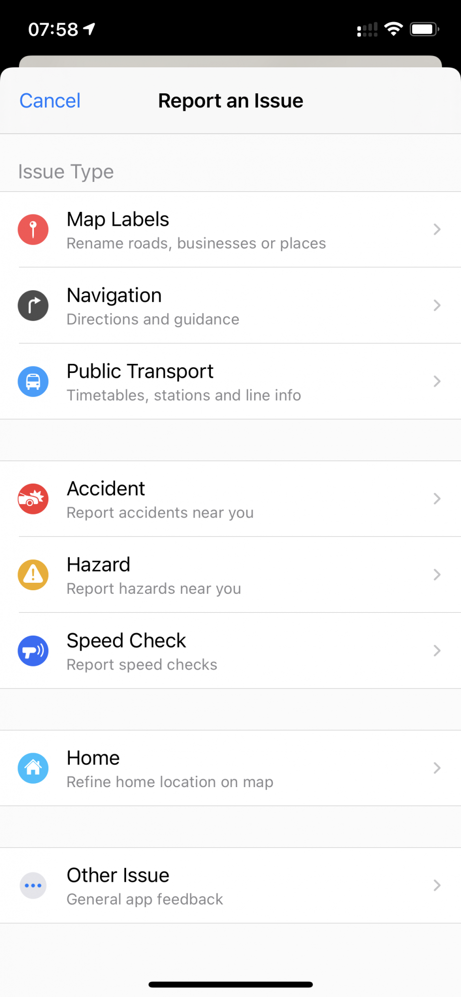 Apologies in advance if this has been mentioned previously but you can report hazards etc on Apple Maps in the UK now.