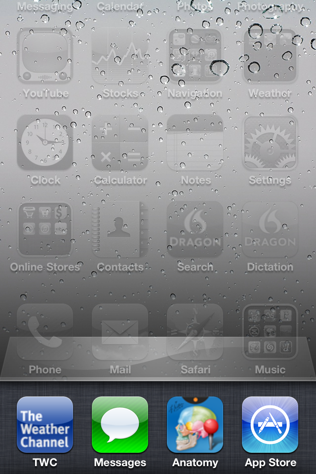 Today, in non-sequential order, I've sent maybe 6 PING's (through PINGchat), made received 3 calls (2 short 5 min ones, one long ~40 min one), used the Apple Store app to look up MBP sleeves, checked periodically and responded to a couple emails, previewed many of the videos I've made, used Safari for maybe 15-20 min total between Gizmodo, engadget, macrumors, used Maps to find a store location and then used it to guide us to the store approx 5 min until I thought to use Navigon (which I then used for maybe 5 min, and wow is the i4 GPS lock awesome), used Grocery G to compile a grocery list and left the app open as I perused through the store and checked off various items within it, listened to my iPod ALOT today (alotta of classical music as I studied, JUST like I did on my 3GS), used the camera app EXTENSIVELY to record HD (LED light on) video of various cadaver musculature in our anatomy lab, used the weather channel twice to check local weather, made maybe 15 texts messages total, used the Netter's Anatomy app all through the day for maybe 4 hours to tag body parts, and finally checked out the app store once or twice for some searches.