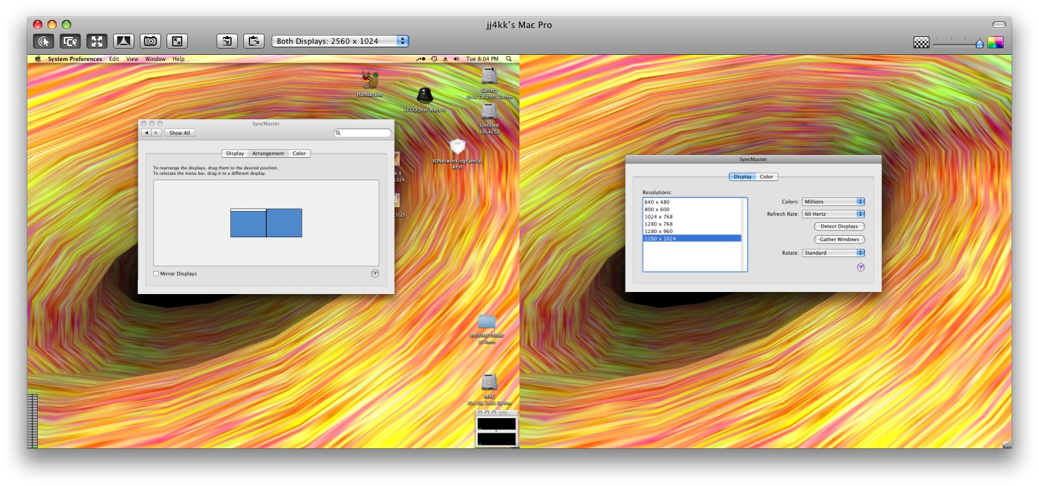 i can remote login to the computer and see both screens.. its a tad confusing