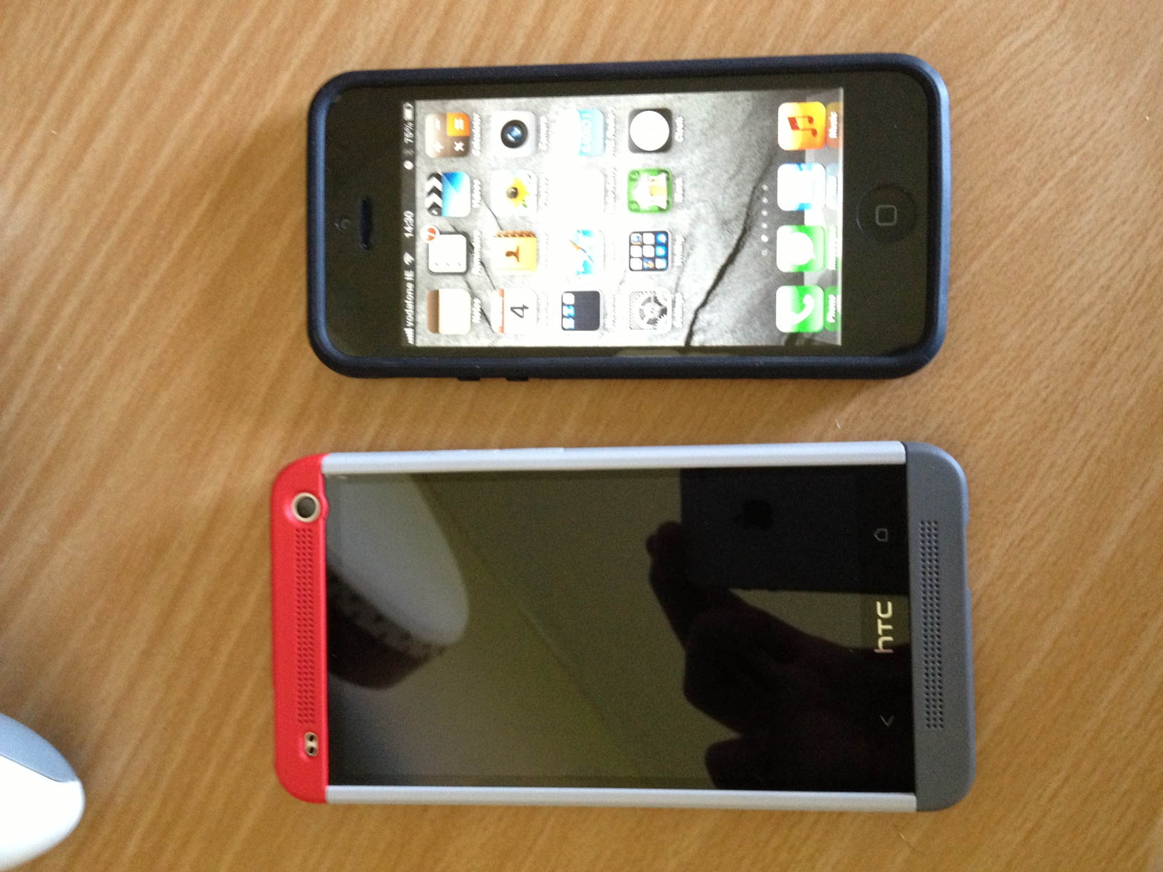 As I was asked earlier about low light I've just done a very quick photo comparison of my iPhone 5 v HTC one in another office as dusk settles in.