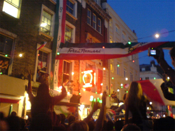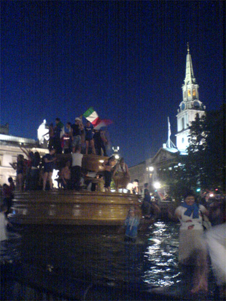 What a game Cannavaro had...Wow! Then we went for a wander through Little Italy, joined the crowd at Piccadilly Circus where the traffic was gridlocked by Azzurri singing 'Ole Ole Ole Ole' and the Italian anthem.