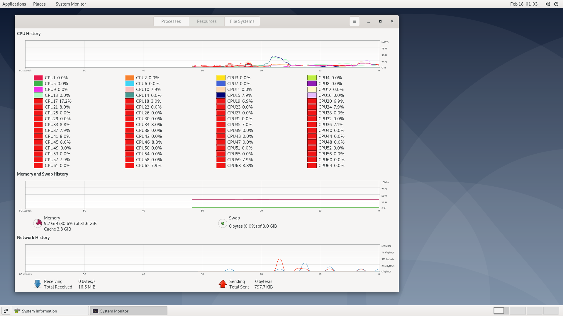 Performance indicators (tasks, CPU, Memory, Network) display OK
