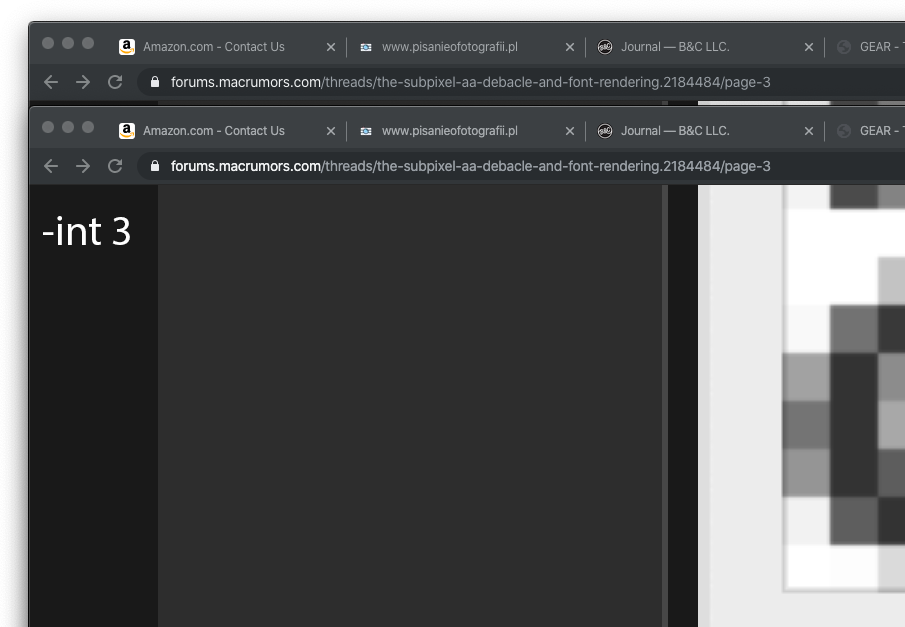 ...and text clarity did improve compared to how it looked right after upgrading to Catalina, it just wasn't great. I think there's an issue with the commands we all ran for Mojave, where somehow when you upgrade to Catalina it messes things up further.