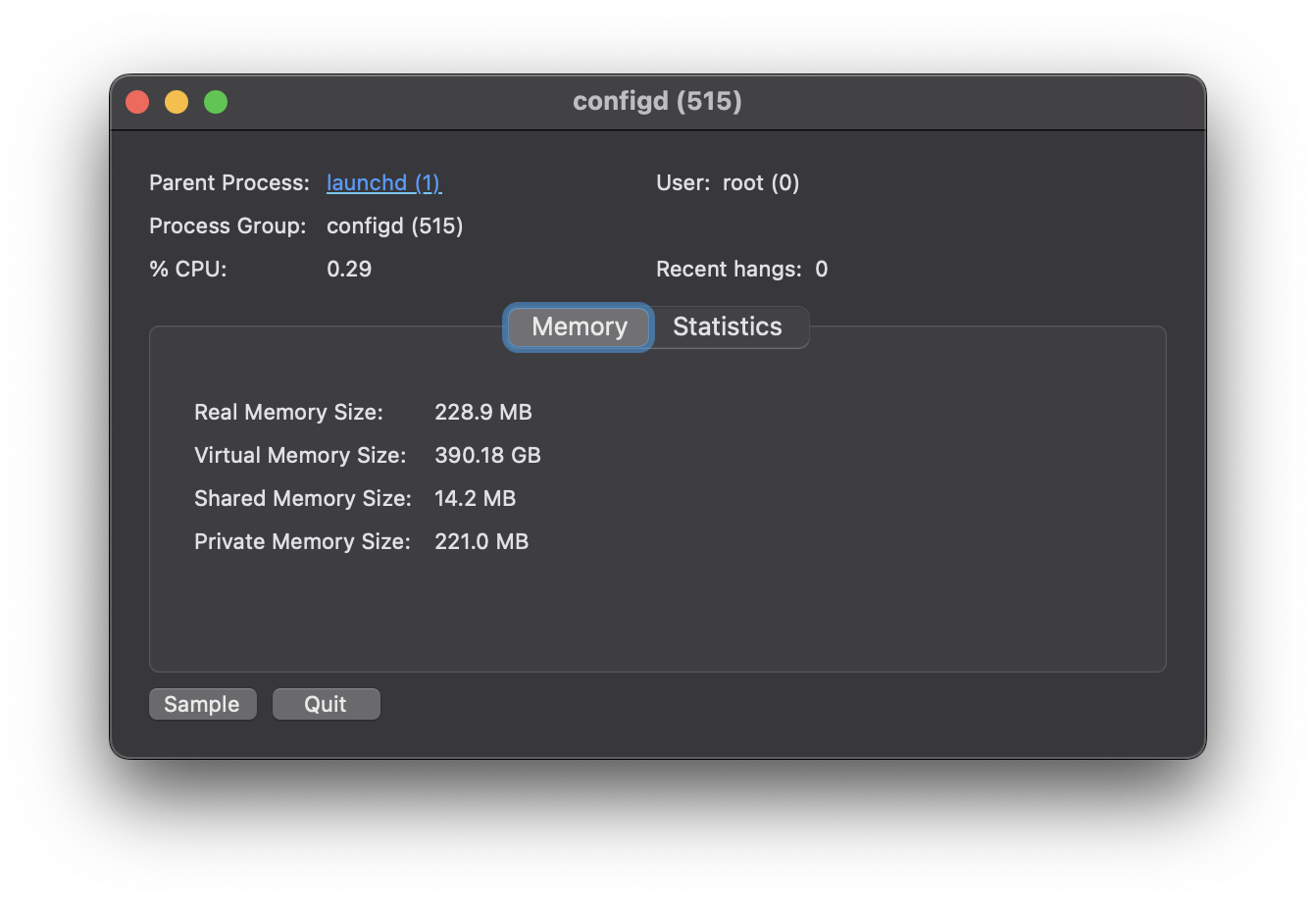 */15 * * * * pid=$(pgrep -f '/usr/libexec/configd'); mem=$(top -l 1 -pid $pid | awk '/configd/ {print $8}'); mem=$(echo $mem | sed 's/M$//g'); if [ $mem -gt 512 ]; then kill $pid; fi