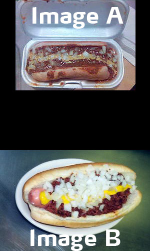 (Note: If you cannot see the difference, 'Image A' is covered with a liquidy "sauce." 'Image B' is covered with more of a dry beef topping)