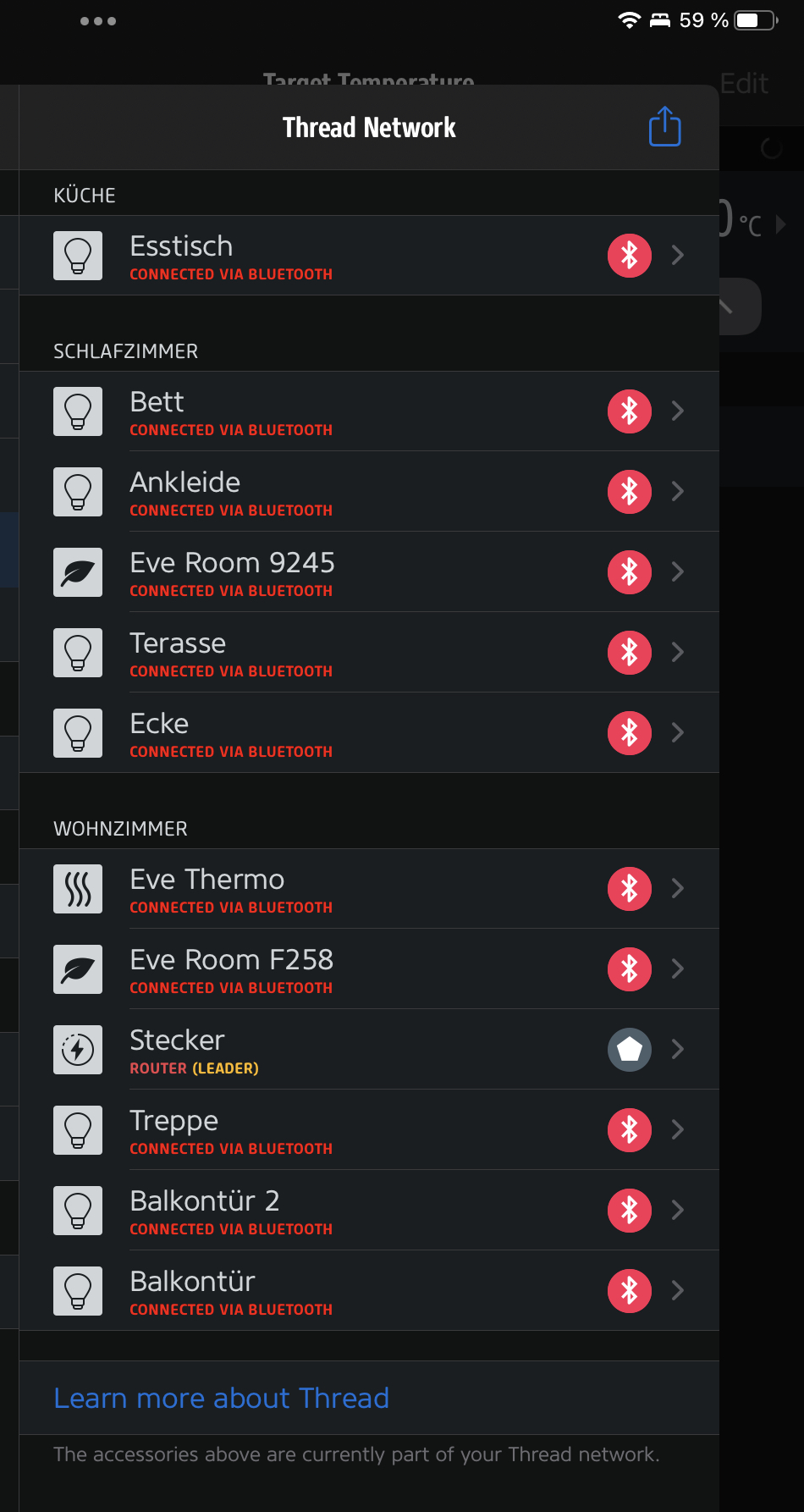However, I went through the same sequence (reset, remove, reinstall), the Eve Weather showed up in my Home and functioned properly in the Eve app (was able to set it to F instead of C, unlike the first time). But the best thing is that doing the above ALSO made all my Nanoleaf lights reachable. It's almost as if having that one dysfunctional/unreachable device on the Thread network rendered the entire network unreachable. Weird!