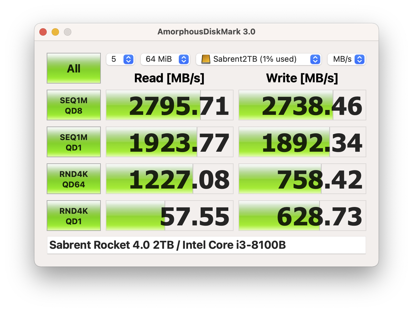 Sabrent Rocket 4.0 2TB (OWC cable port 1 with other disks on port 2):