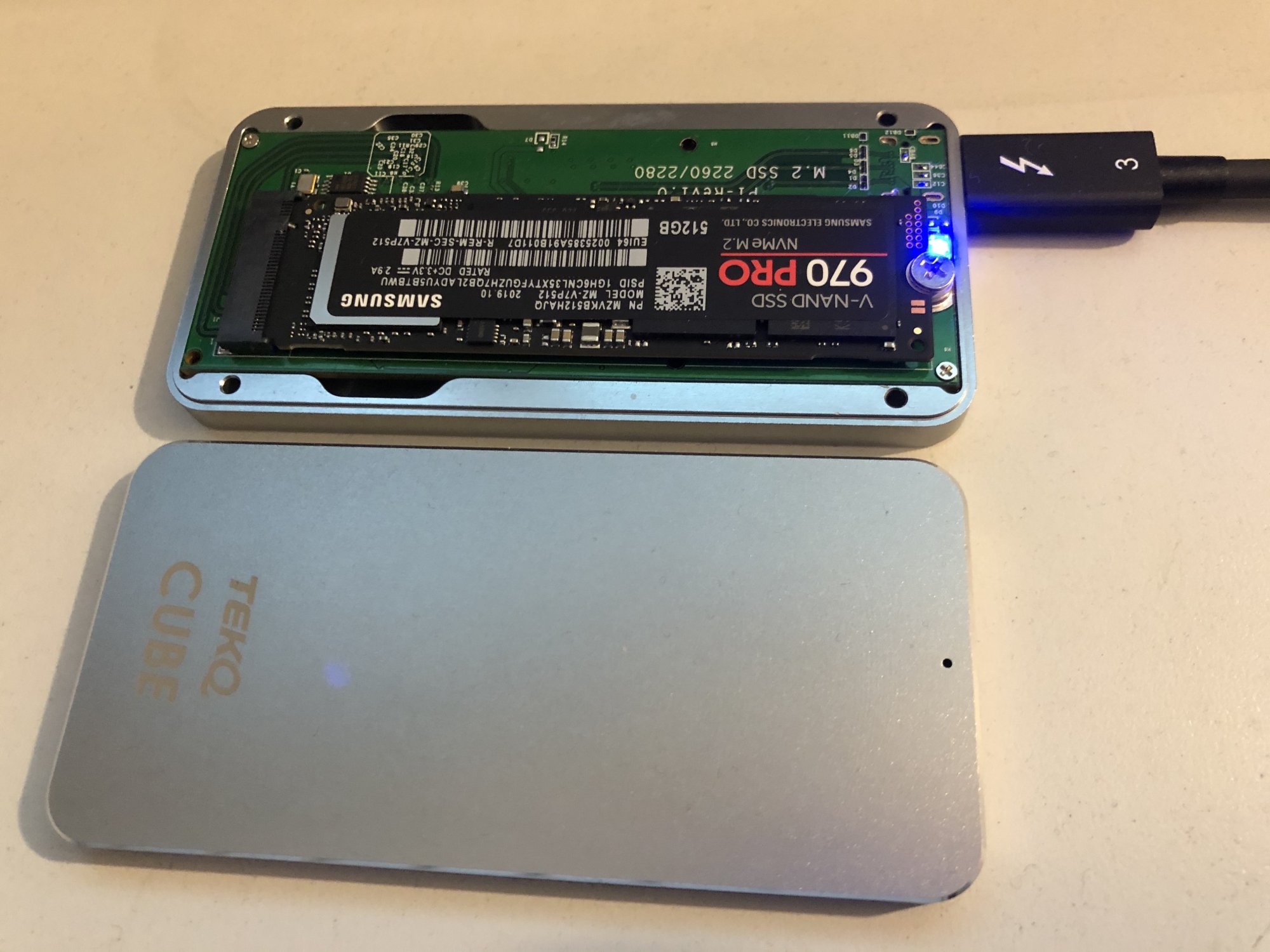 TEKQ Cube with 120G at $109, with the idea to pull the drive and swap in a Sabrent 1TB Rocket for $109, making my total 1TB ~$218 plus a "free" 120GB drive I could swap into a cheapo USB-C case. The case is 1 year, the Sabrent drive according to the Q&A is 1 year, but if you register is on their site, it's 5[?]