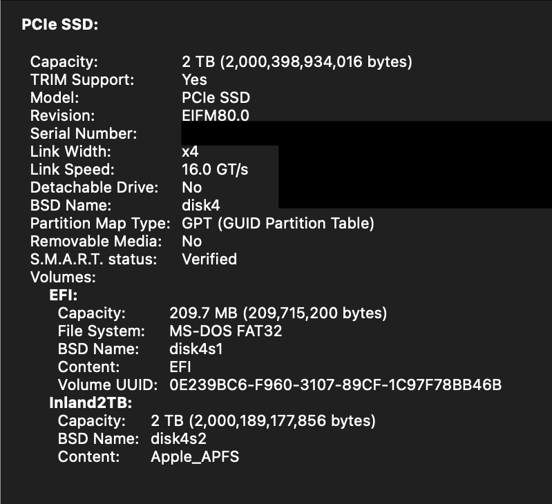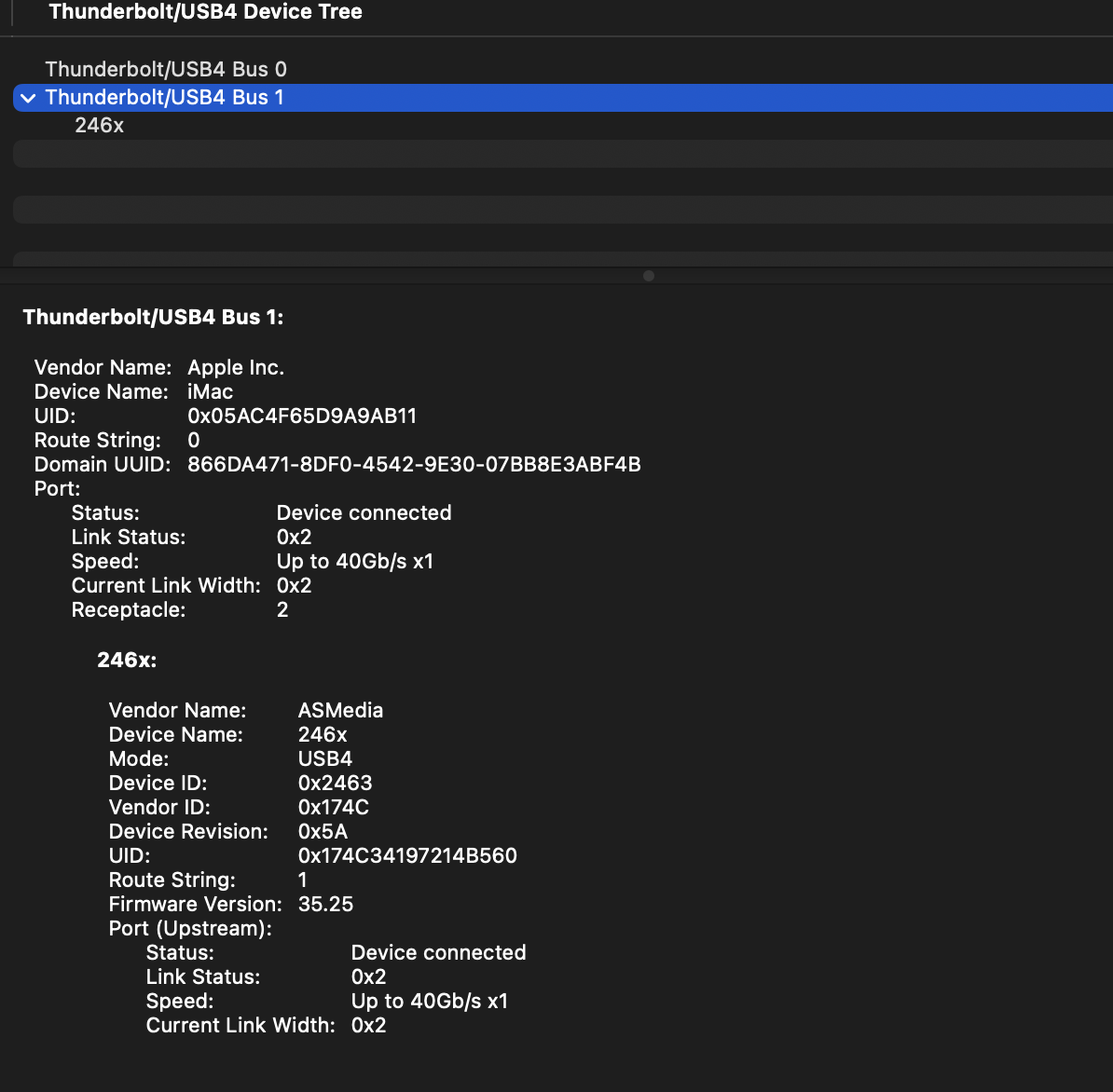 Additionally, it's only connecting at 8 GT/s and link width x4, which means its definitely not an ASM2464.