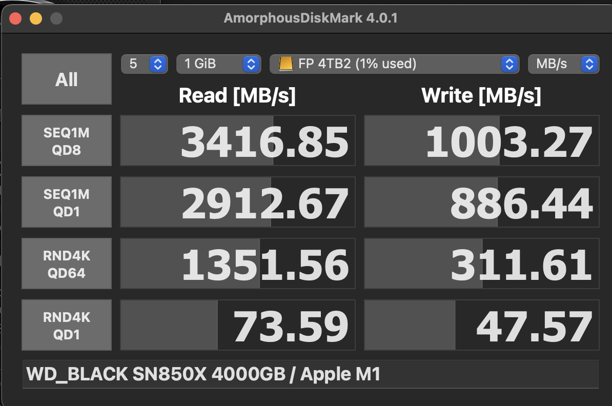This is rather disappointing as the Hynix is supposed to be capable of 3500 MB/sec reads and 3200 MB/sec writes.