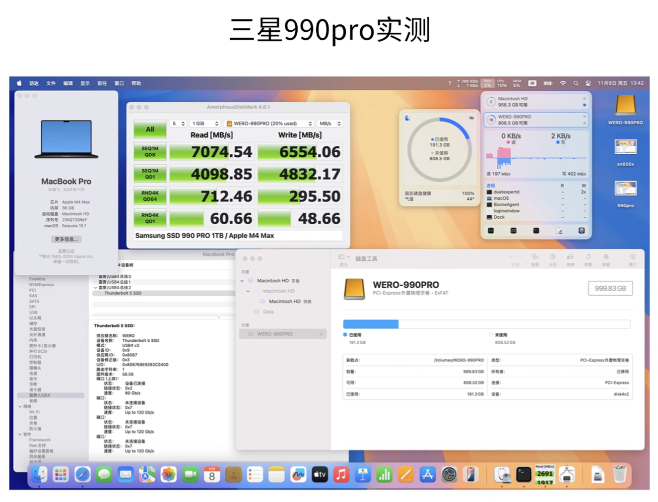 Its interesting, the Wero screenshots show it is connecting using the USB4 v2 80Gbps Protocol, which Apple doesn't list as 'available' in their M4 Pro/Mac Tech Specs: