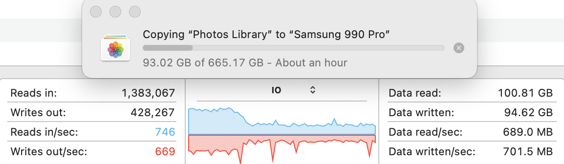 BTW, now Photos loads instantaneously on the 990 Pro. With the old T7 Shield, sometimes at first launch there would be a delay of a few seconds. I'm not sure why, but I'm wondering it was asleep and takes a couple of seconds to wake up.