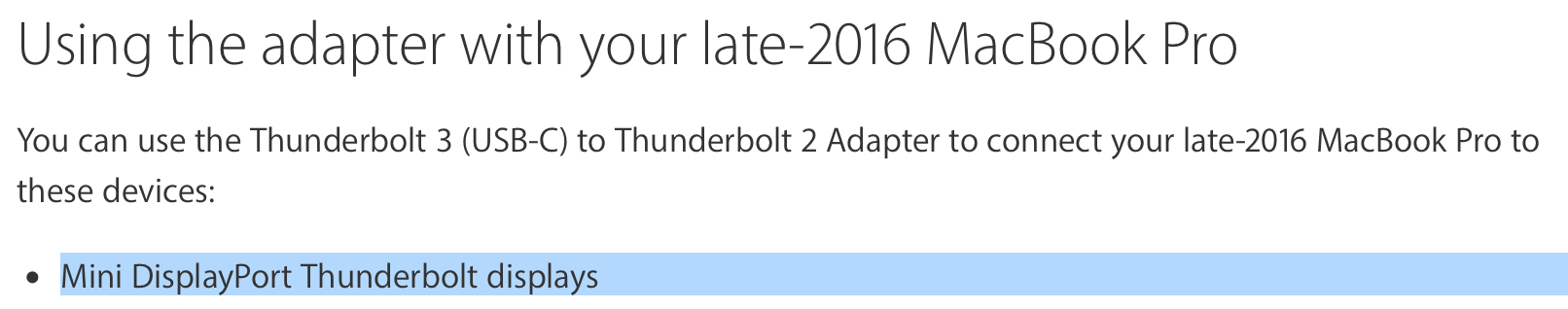 I'm getting my new Macbook Pro 2016 next week and I was wondering if I could use a Thunderbolt 3 to Thunderbolt 2 or HDMI or anything else to connect it to this https://www.amazon.de/gp/product/B00HG7EB64/ref=oh_aui_detailpage_o00_s00?ie=UTF8&psc=1
