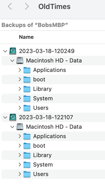Time Machine to an HFS+ volume uses the "hard links to directories" feature of that filesystem. Time Machine to an APFS volume uses the "snapshot" feature of the newer APFS filesystem. So the structure differs depending upon the format of the backup disk.