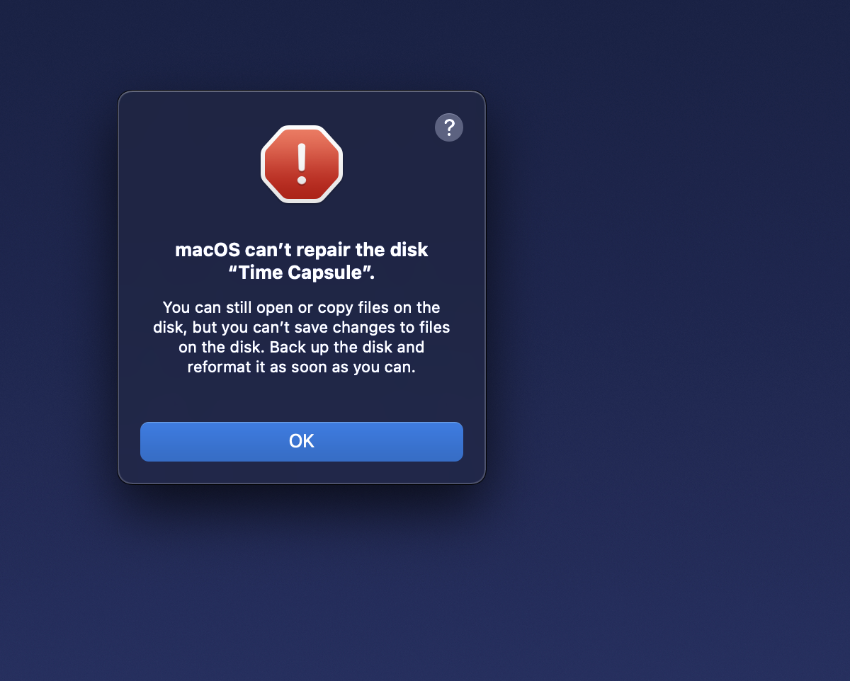 My Time Machine external drive (just a normal 1TB external drive, no Apple time capsule) has suddenly crashed?! Anyone else having this issue?