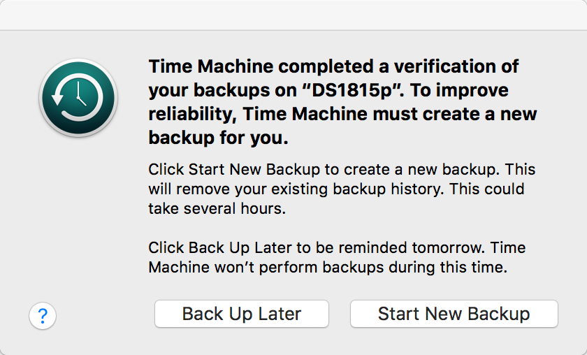 I've had my new laptop for a couple of weeks now, and I've been using time machine for months on my old 2010 MacBook Pro with no problem. Last week I got this message about time machine needing to create a new backup, and that my old backup would be deleted. This is now the second time it's happened. My 2010 15" MacBook Pro never had this problem with backups, but this one has done it twice within 7 days. Does anyone know what would cause this problem? I'm really getting tired of having to do new backups every week.