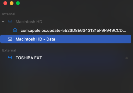 Normally, I would have expected to find both "Macintosh HD" and "Macintosh HD - Data" as the backed up volumes. However, this is not the case. It's just the one drive. Pic below with hidden files visible.