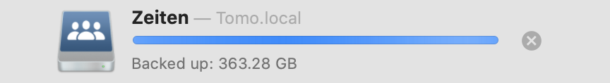 My MacBook running Catalina started the backup perfectly and 15 hours later it has copied all data, but now it is stuck on "Backed Up: XXX GB" (see attached screenshot). Looking at the Time Machine volume ("Time Machine Backups") I can see that things are copied, but the backup has still the ending ".inProgress".