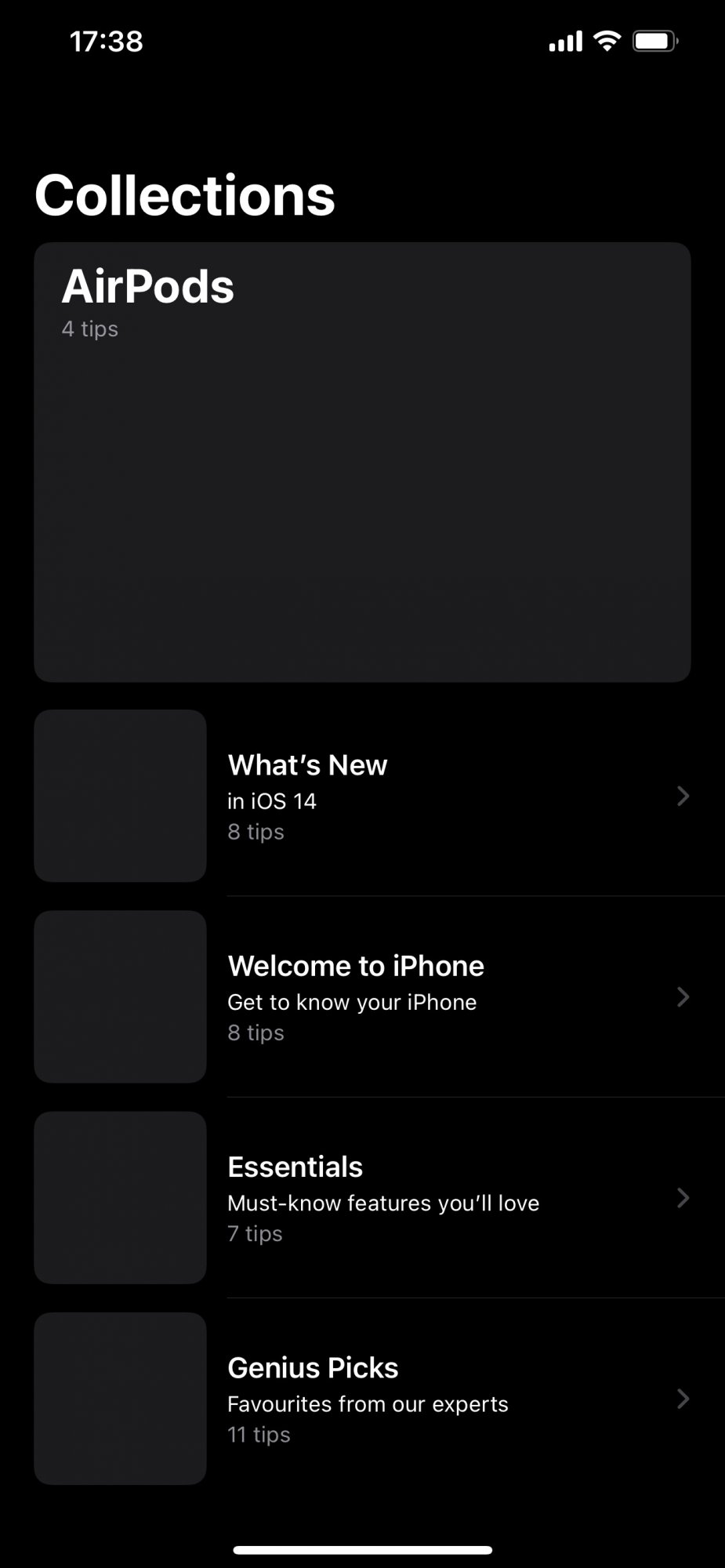 on 20 February 2021 Tips applet was updated and we have only black screen now with some description , no any additional content as before- have anyone have the same problem? - iPhone 12 Max and iPhone 11 Pro