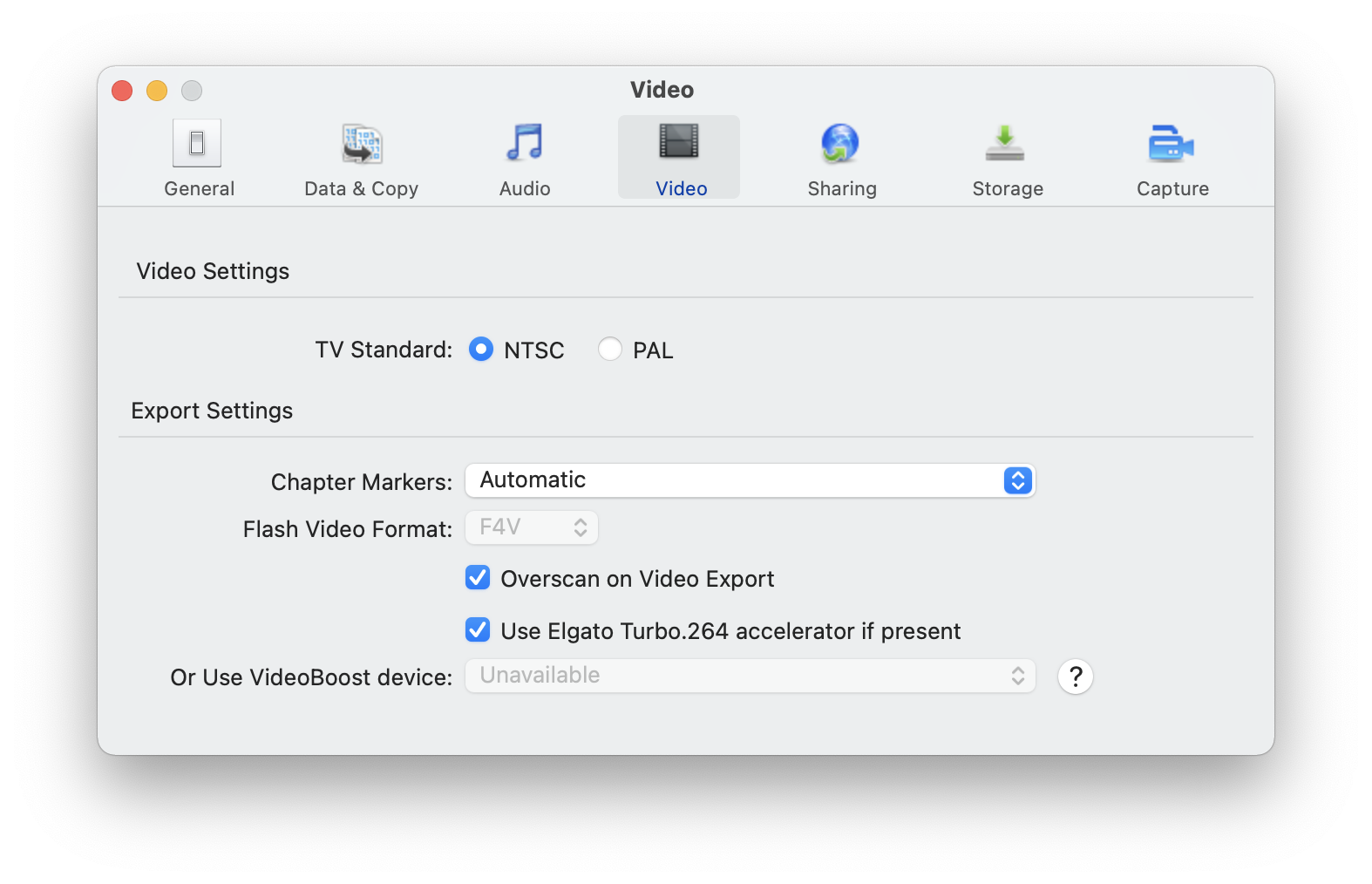Under settings in video: the Flash video format is greyed out and is set to F4V. Since flash is now discontinued, I figured that's why and there is no need for it. Even if flash was still active, I have no need for it personally. My reason for having a copy of toast around is for Blu-ray Video support. I also own a copy of Toast 17, and 11 both have the option mentioned enabled, however both are installed in Virtual Machines with older versions of the Mac OS. Toast 11 is in a snow leopard VM, and toast 17 is in a Catalina VM.