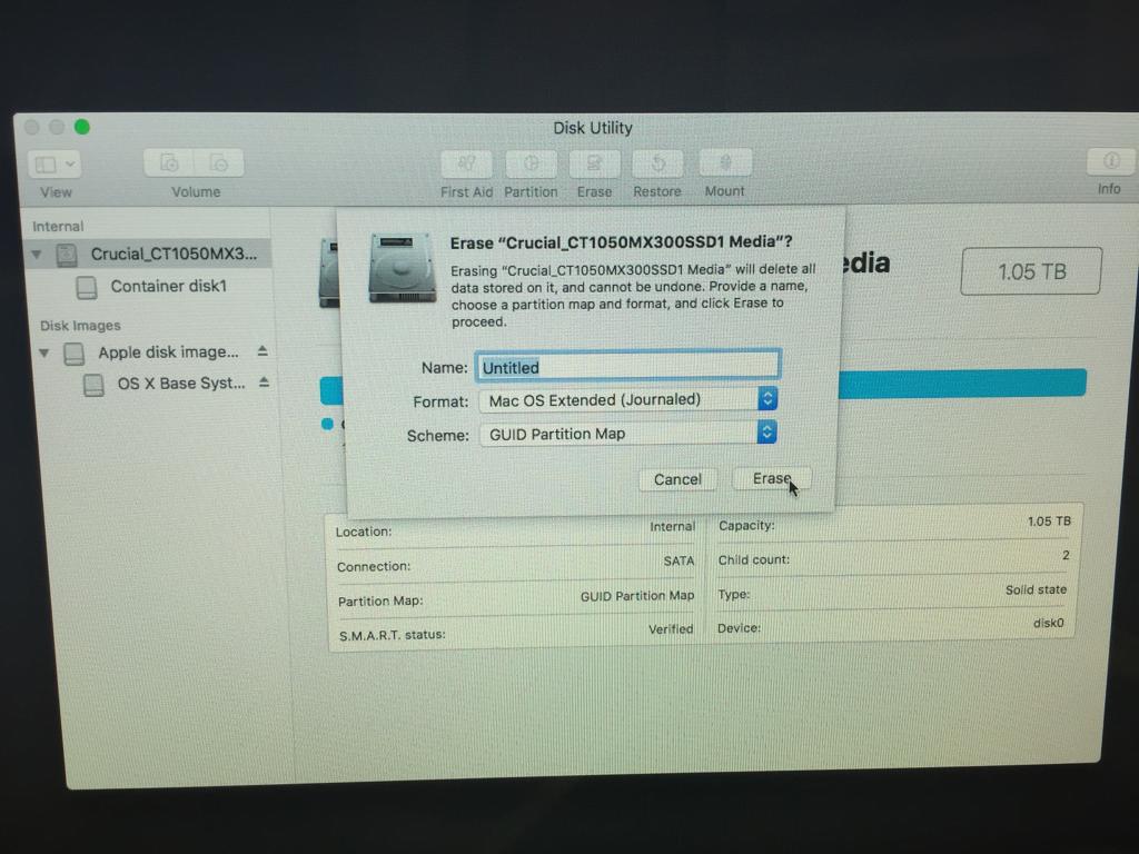 I have managed to erase the disk but when I tried to reinstall the OS, I got an error "Could not create a preboot volume for APFS". Based on what I read online, I unmounted the disk and and then tried to erase it and reformat it into Mac OS Extended (Journaled). Then I keep getting an error "Erase process has failed" I've got not idea where to go from here!!