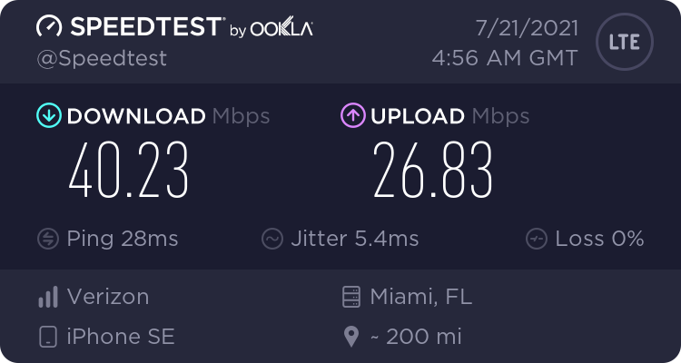 NOTE that speeds tested on the iPhone are 26.36mbps down/ 15.23mbps up. Not sure why the tethered vs on device speeds are so different.