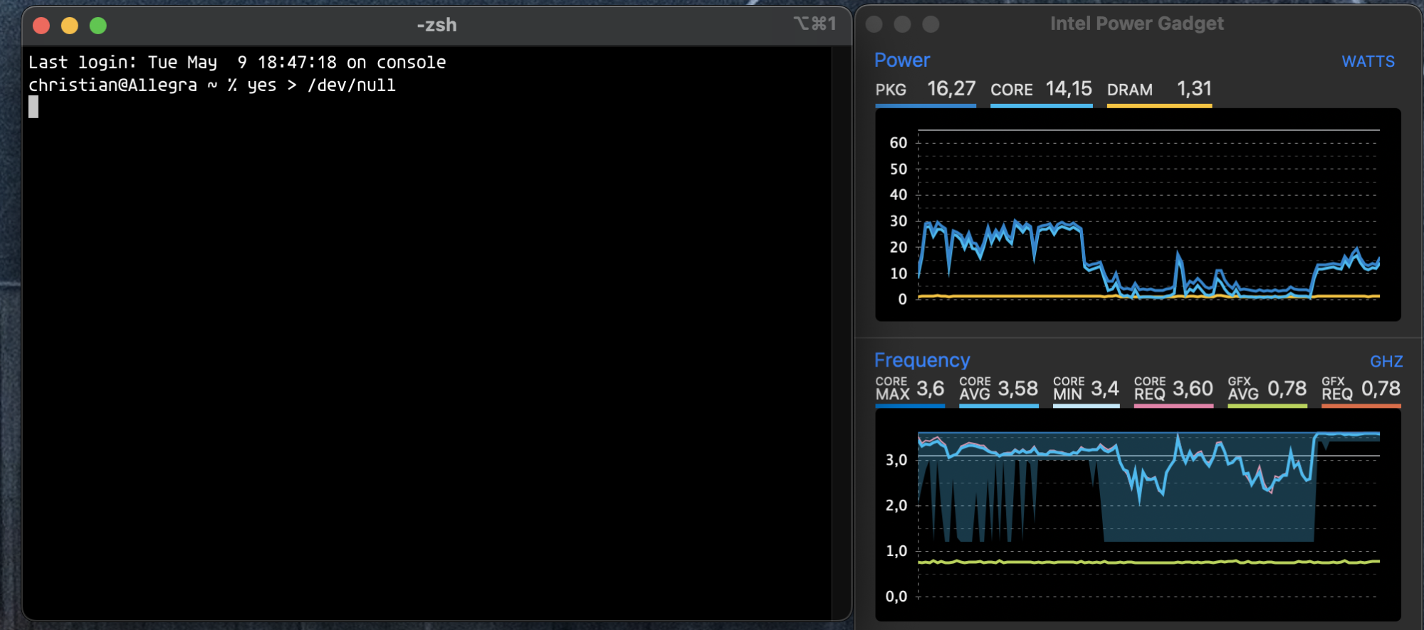 Earlier, I posted on the “What have you done with an Early Intel (Mac) recently” the use of the Intel Power Gadget monitoring graphs and the Turbo Boost switcher utility on my Sandy Bridge MBP I picked up in March.