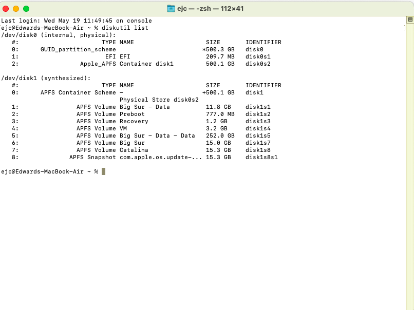 As you saw, Disk Utility is much clearer when you are showing devices. And the diskutil output halls to add a little more detail but is essentially telling us the same thing. The volumes you have:
