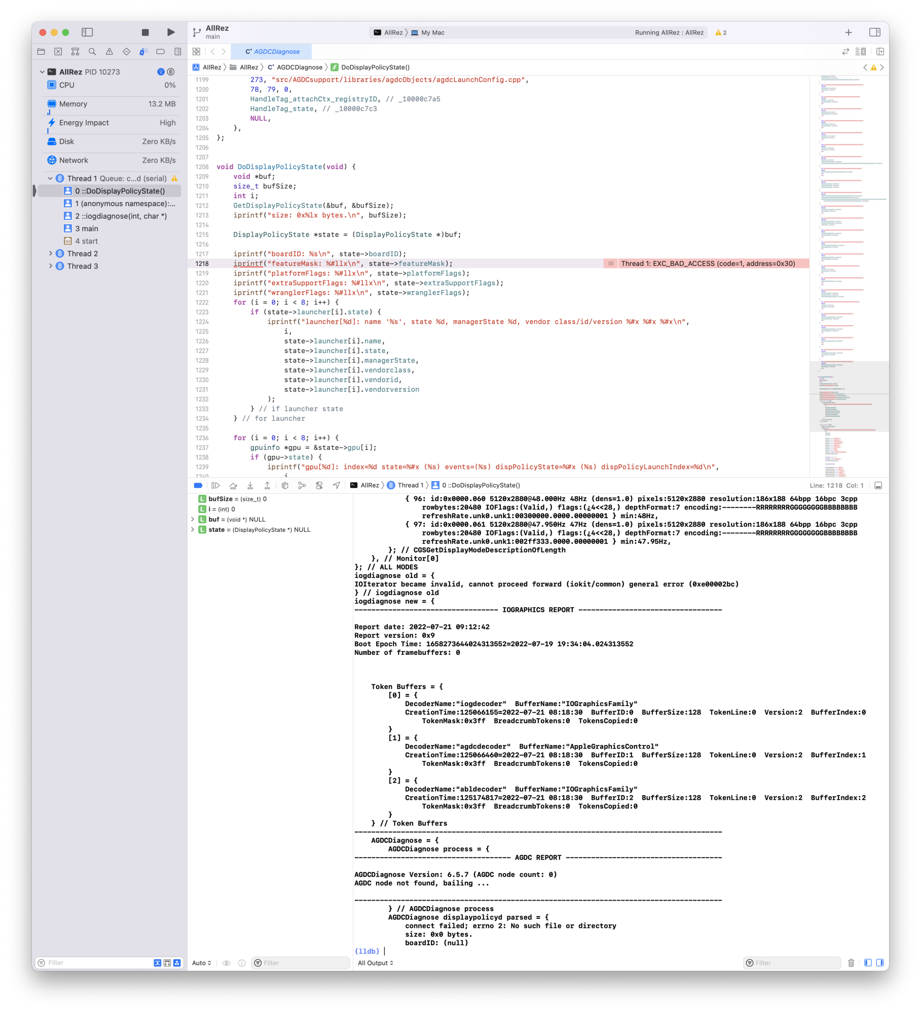 Thanks for checking. I'll fix that soon.Thanks @joevt for the detailed response. AllRez is crashing on line AGDCDiagnose.cpp:1218