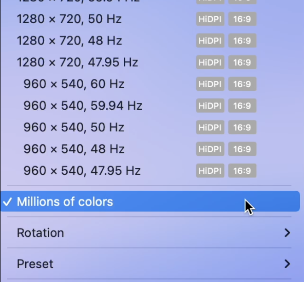Hmm..... Intel Macs have an HDR button. The dynamic range setting (HDR/SDR) is included in the detailed timing description so it's easy to tell from the AllRez output when HDR is enabled or what modes support HDR.I'm not seeing any option to enable HDR...?