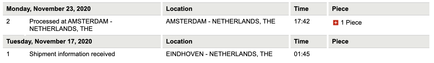 Yeah just received a text too that delivery should be on wednesday. Tracking hasn’t updated for my package either.I just received a text from DHL that delivery is due tomorrow! Online tracking hasn't updated yet. Has been saying "Shipment information received" in Eindhoven since the 17th.