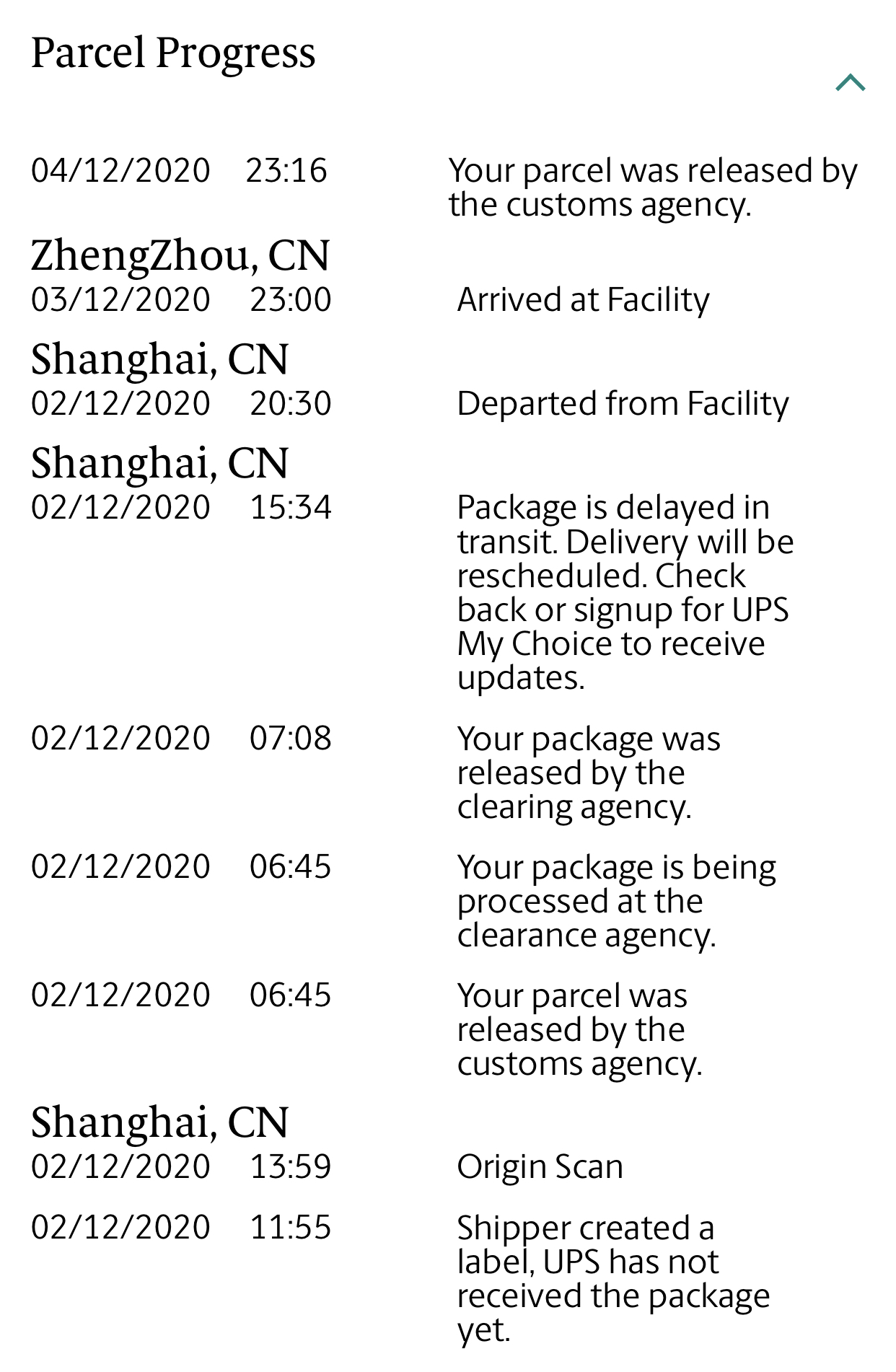 Order confirmation said delivery expected 4th - 11th December