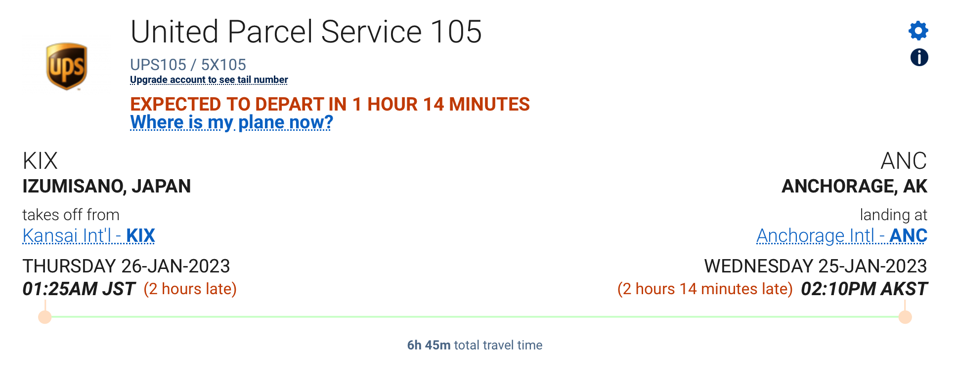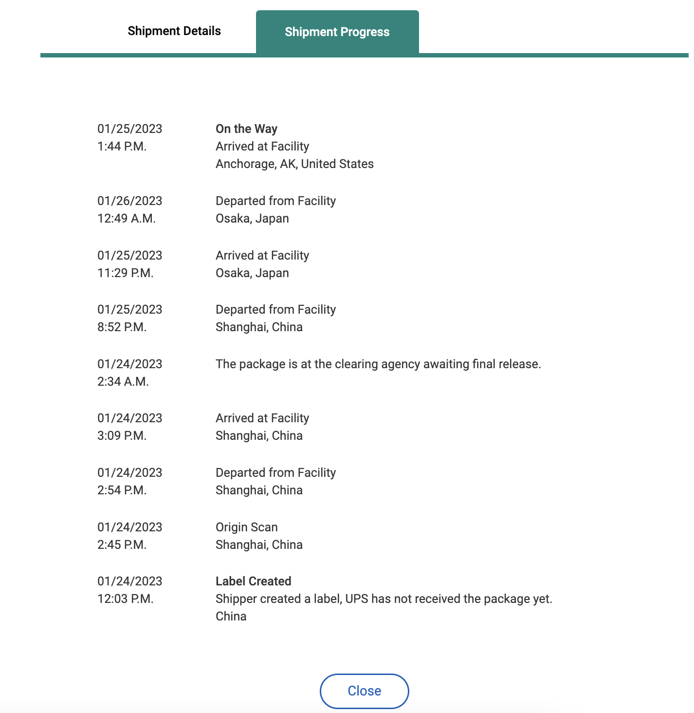 | 01/26/2023 12:49 A.M. | On the Way Departed from Facility Osaka, Japan |