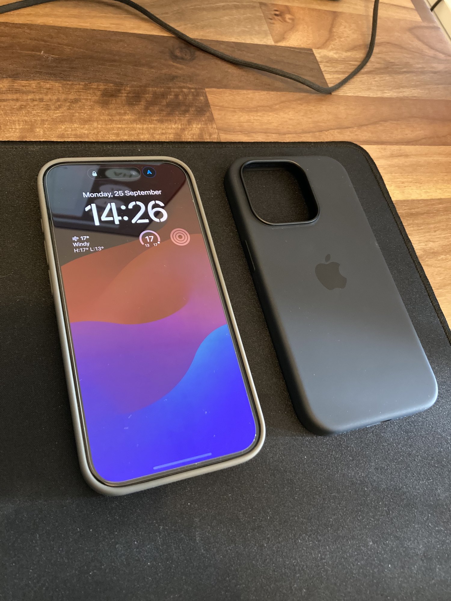 That is the Apple Silicone case in the 'Clay' colour. The phone is a black 15 pro. I like the colour of the case yeah. The colour is a lot more grey compared to the promotional material which a lot of people have commented on. I prefer the real colour to the colour in the promo photos though.