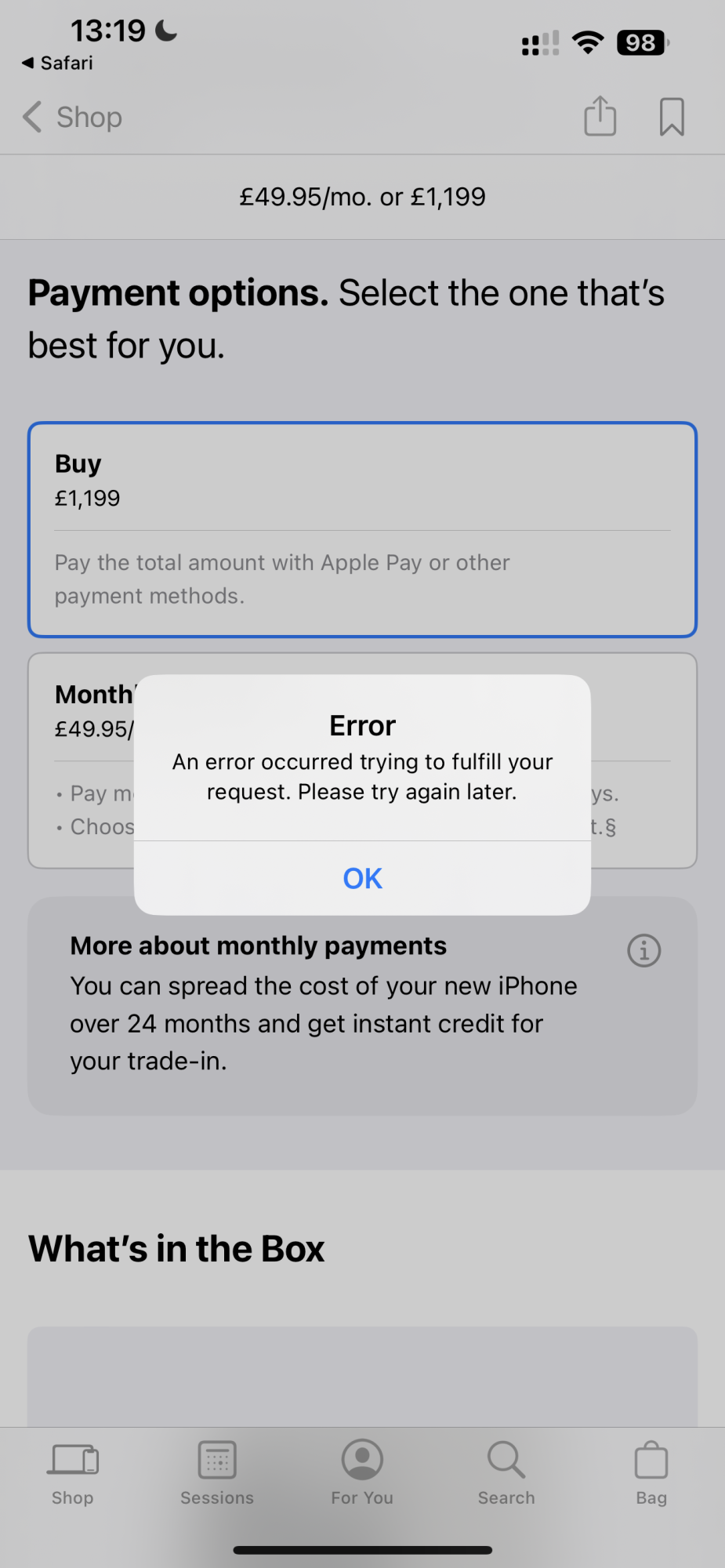 A lot more effort than in the past. Neither apps would load, errors when selecting to pay outright. Finally managed at 13:24 to sort one through safari on iPad.