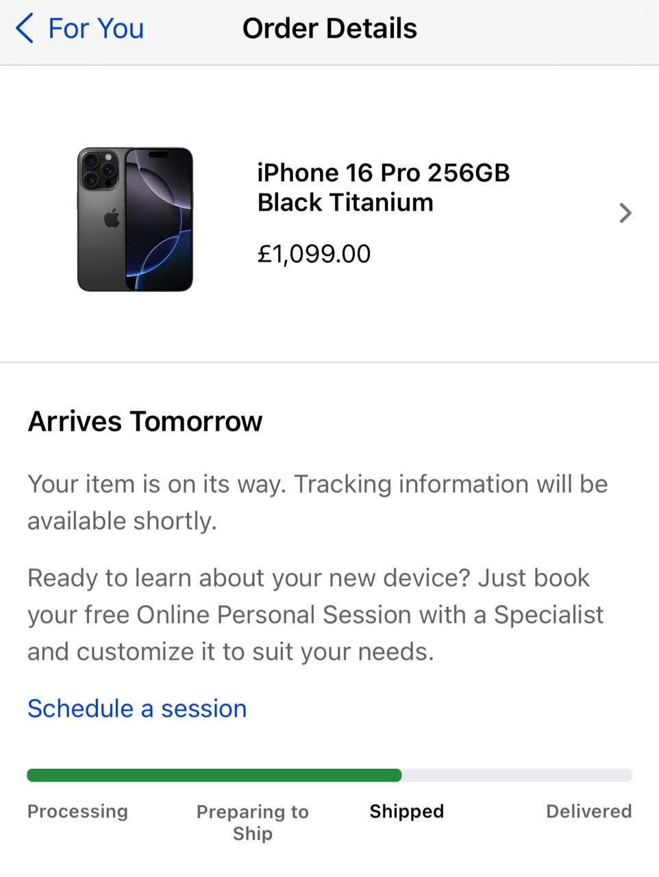 I haven't got the 'track delivery' link yet: