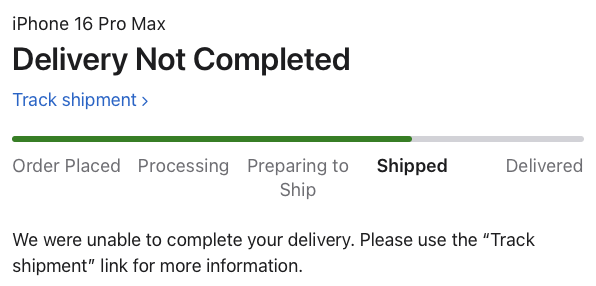 What happens when you click on the Track Shipment link? No clues as to what is going on?What does this mean? There isn't anything else for me to complete, on apple or dpd's site