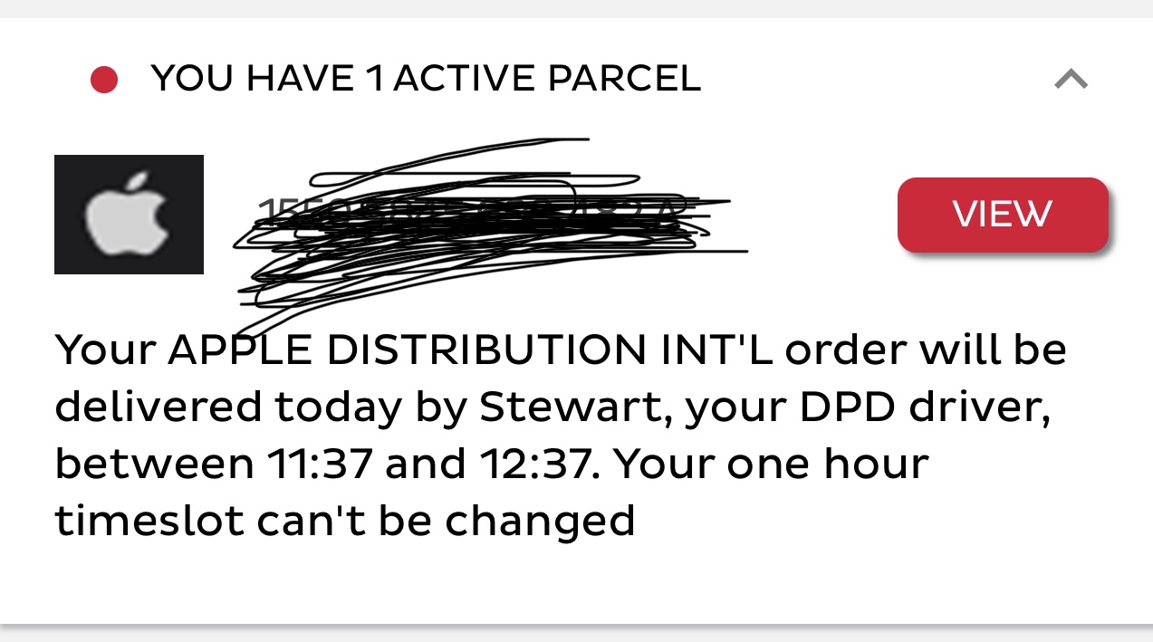 Looks like last nights message was just a glitch. Now it's saying out for delivery on apples site. And dpd will be here before middayWhat does this mean? There isn't anything else for me to complete, on apple or dpd's site