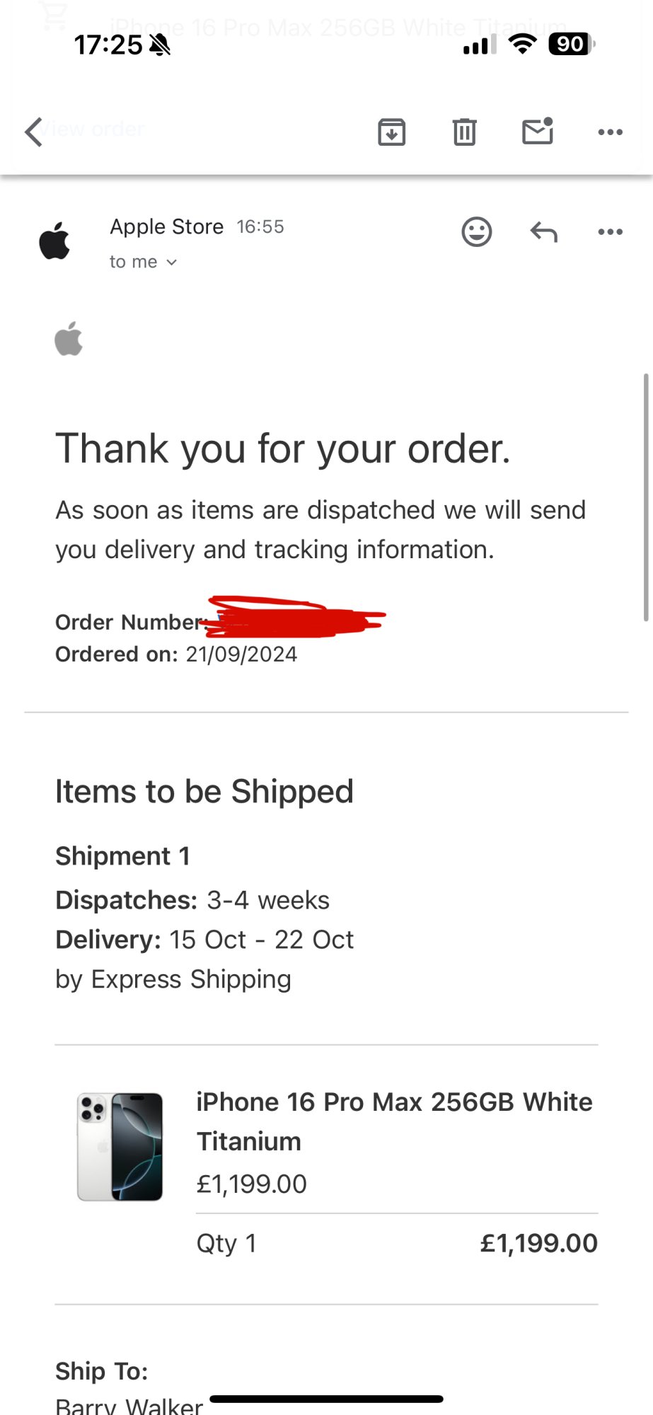 Hi, can you remember what time you ordered and was it the pro max? I’m hoping to get a email from dpd today or tomorrow.