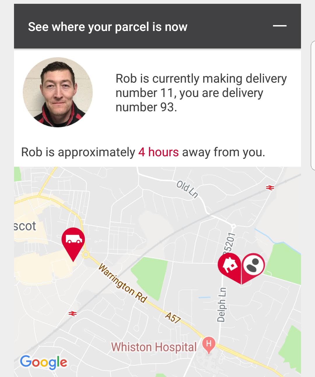 ThanksAbout 45 mins after the tracking updated, i received a text with a time slot.