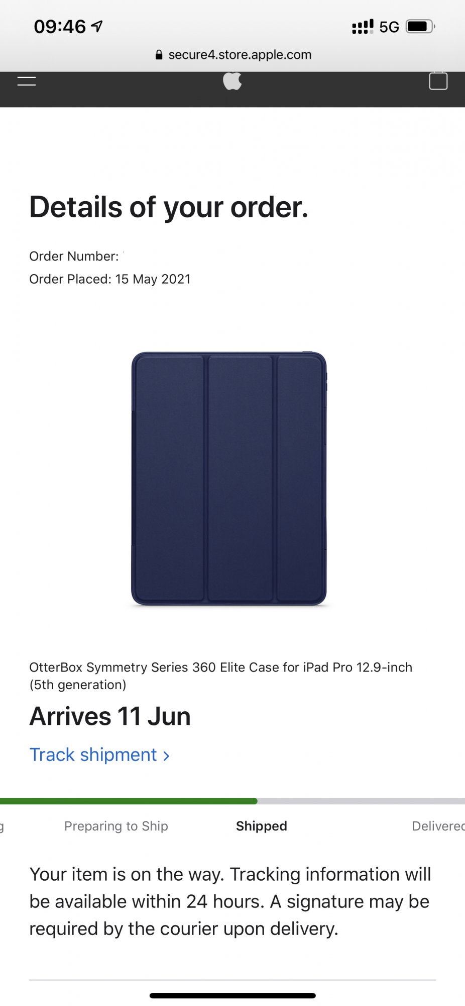 I ordered an Otterbox case, was down for June delivery but has been shipped and arriving tomorrow via DPD. Hoping my Preparing for Shipment iPads arrive too!