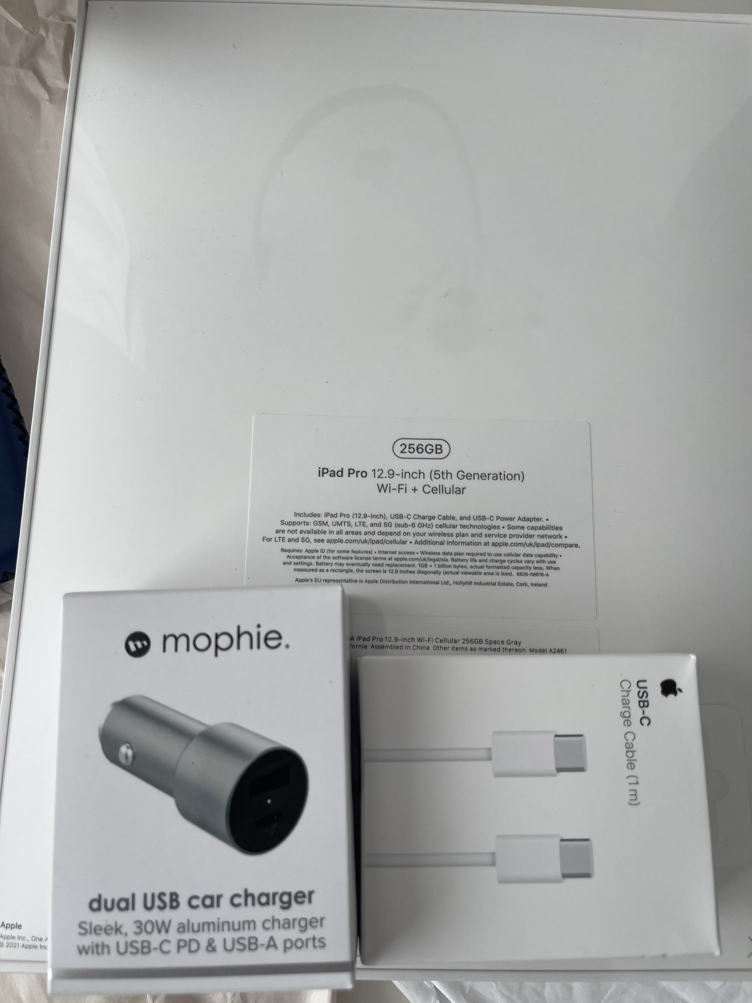 Yes that’s it 👍🏻So he can keep his iPad charger and cable in house, and the car charger plus usb-c cable in car?