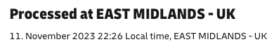 I'd be surprised if it gets on a plane so soon after being processed. There's another flight to EMA in about an hour that's a more likely choice. Still, East Midlands is in the arse end of nowhere so even if it gets there in the next couple of hours, it's still a several hours drive down to civilisation so I doubt it'd get down to me ready for delivery rounds, if they are doing Saturday deliveries.