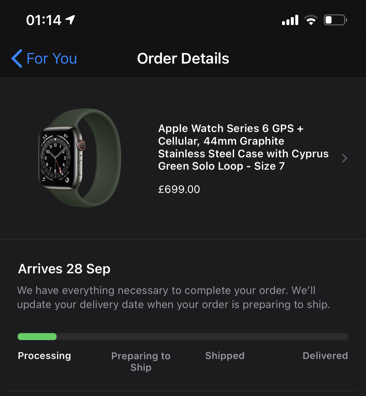 Placed an order at 19:14, figuring out what size loop to go for was a bit of a spanner in the way of the rapid checkout I was after.