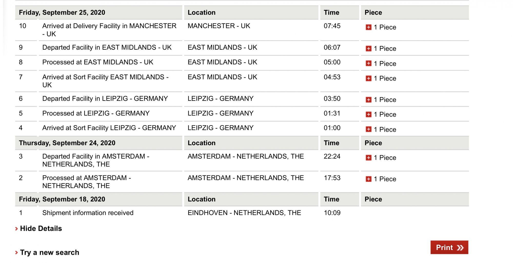 It may have not updated for some reason. Mine went to Heathrow (from luton - via leipzig) and has just left Heathrow about 10 mins ago?Your tracking page looks much more promising than mine. I’ve landed in Heathrow but it’s been put on hold and hasn’t reached a delivery depot yet.