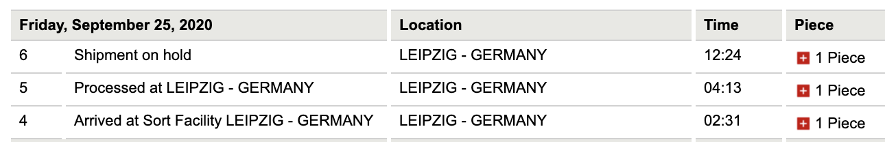 Mine was in the Eindhoven black hole, then finally was due today from DHL but is currently stuck in Leipzig.