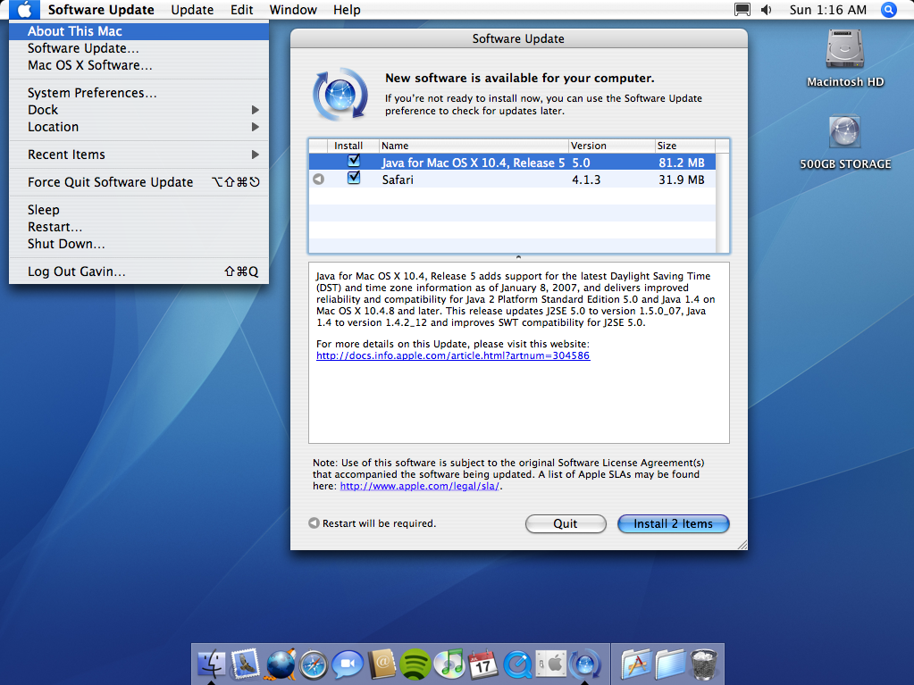 Also to save a bit of time if you are starting with a fresh install of Tiger or running an earlier version of Tiger, download the 10.4.11 Combo Update (180.8MB) and keep it handy for future usage.