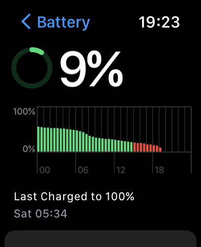 But also - I would never have gotten this heavy of a day out of any prior watch, especially with cellular usage. On a given day, when running / walking while on cellular, I would absolutely need to top up the battery during the day. And even without cellular, I'd finish a 15-16 hour day with near 0 battery left (on my 10 month old Series 7).