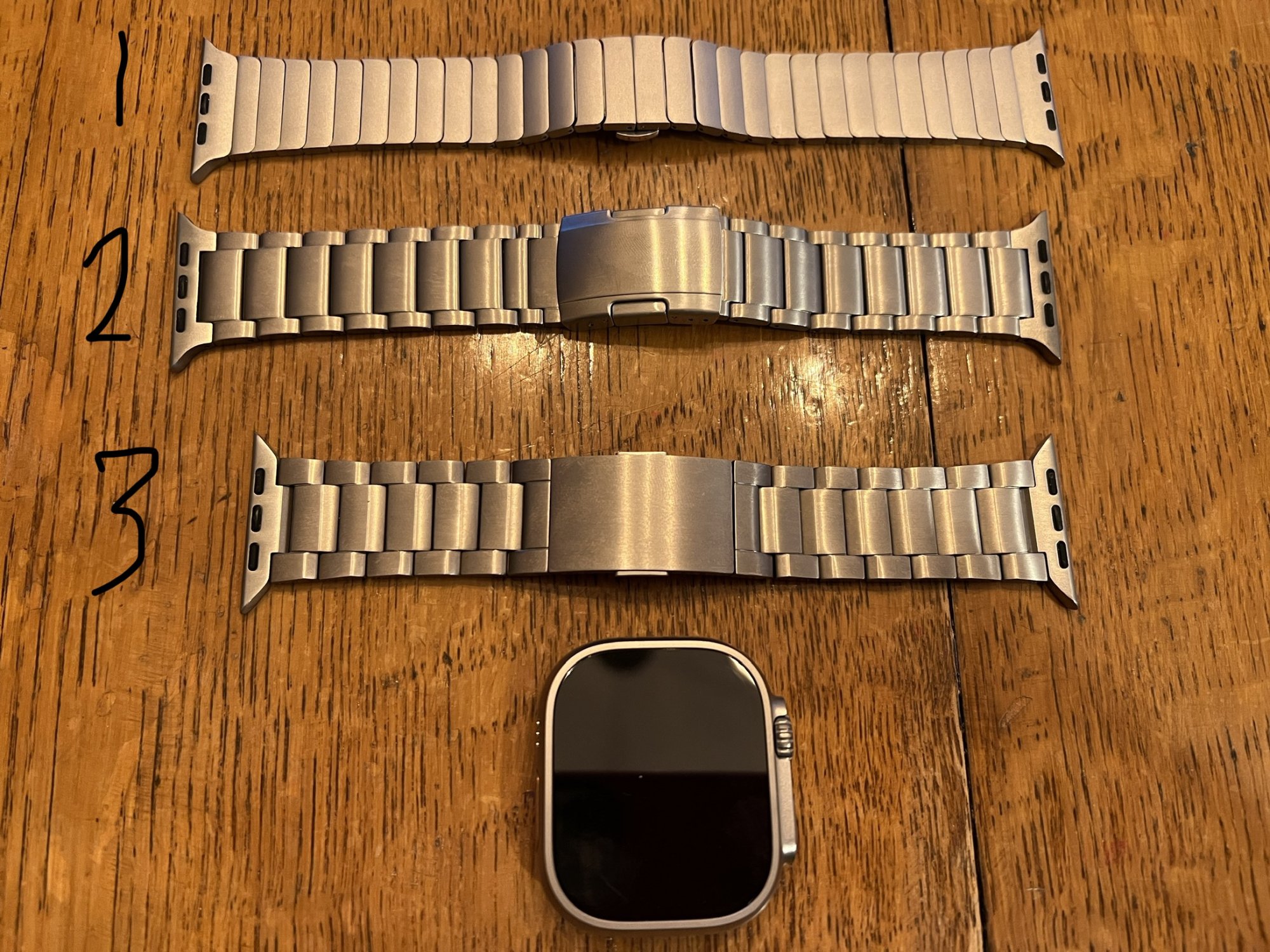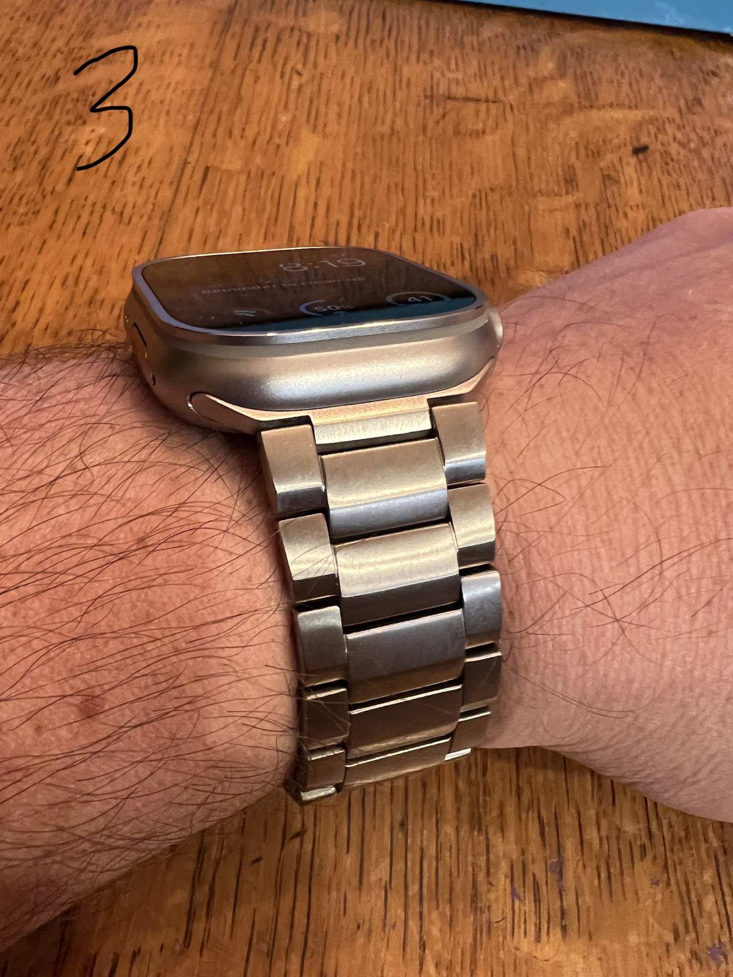 I have recently been searching for a nice titanium metal band to go with my Ultra. I bought the 3 you see below. I am posting this as I am wanting to share in case someone else is looking for one too. I plan to return 1 and 2 and keep number 3.