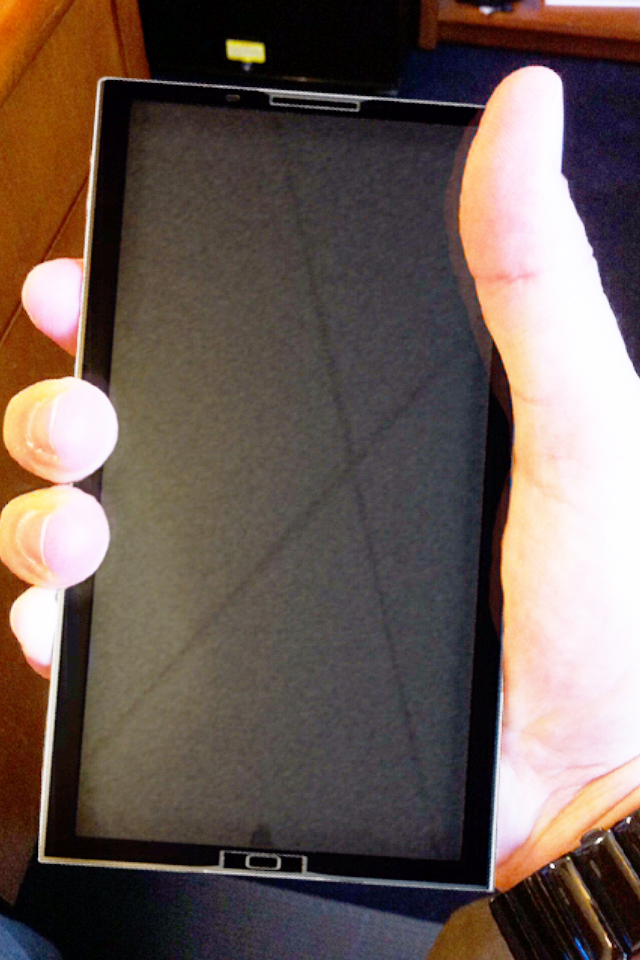 No, it doesn't. Bad photoshopping, look at the fingers "holding the thing"...